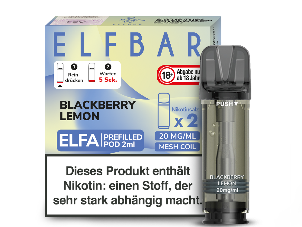 Schreibe die erste Rezension für „Elfbar – Elfa Pod Blackberry Lemon 20 mg/ml (2 Stück pro Packung)“